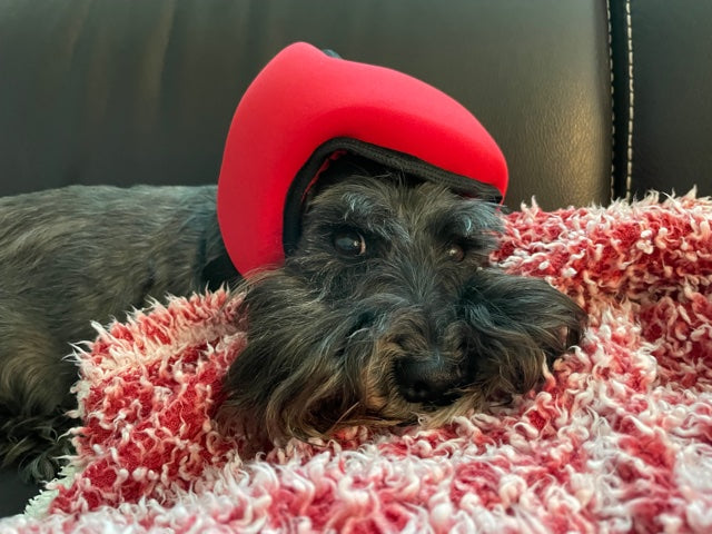 We modeled ourselves after the best human noise cancelling technology, and used audio testing technology to prove that the electronics were in fact cancelling the frequencies that were found to be problematic. We used the same technology, testing, and human test responses that the human industry conducts. Then, only after we felt it was mathematically sound and human approved, we put the electronics plus the full dog ear muff helmet on Emma (our muse, see her story page), in different loud situations and it worked. We could visibly see a difference in Emma's behavior. The highlight was taking her with us to the New Year’s Eve Concert with midnight firework celebrations (video on our website & facebook pin). Emma was not bothered by the fireworks being set off less than a block away. We had a lot of people stop us and interact with Emma. All were impressed by her calmness and her ability to still interact with them. She also asks for them when a storm is coming, and will happily chew a bone or return to sleep, while a nasty southern windy storm blows through. We also practiced with other dogs we know to make sure we had good sizing, and we were not creating adverse reactions with dogs that just wanted to be part of the pack and wear what the others were wearing.